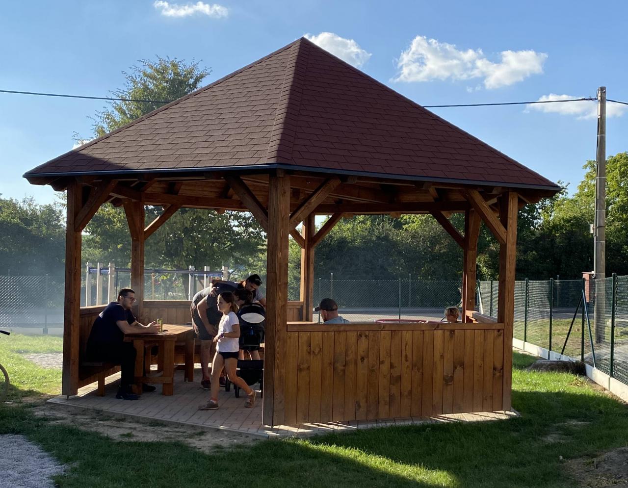 Pergola vznikla právě pro návštěvníky dětského hřiště, kteří tak mají kde posedět při čekání nebo hlídání svých dětí.